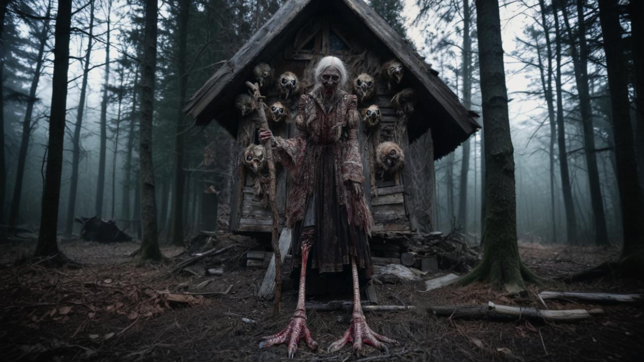 Baba Yaga's hut is a well-known element of Slavic folklore, particularly Russian fairy tales. It's a magical, sentient dwelling that stands on chicken legs and can move around on its own. Made with Midjourney, magnific.ai, Kling AI, Freepik, Elevenlabs, Adobe Premiere Pro, Topaz Labs Video AI